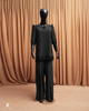 Bottom: Dyed trousers with organza finish on the hem.